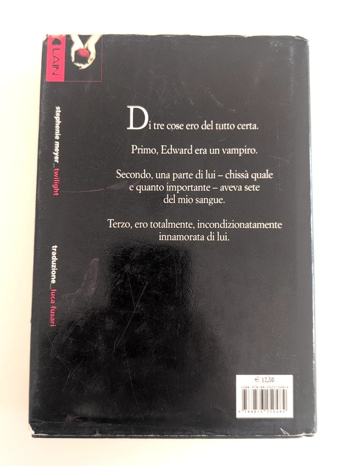 Twilight è il romanzo d’esordio di Stephenie Meyer e il primo capitolo della saga che ha ridefinito il genere Young Adult e il mito dei vampiri. Il libro è una storia di romanticismo, suspense e desiderio proibito, ambientata nella piovosa e misteriosa Forks, Washington.